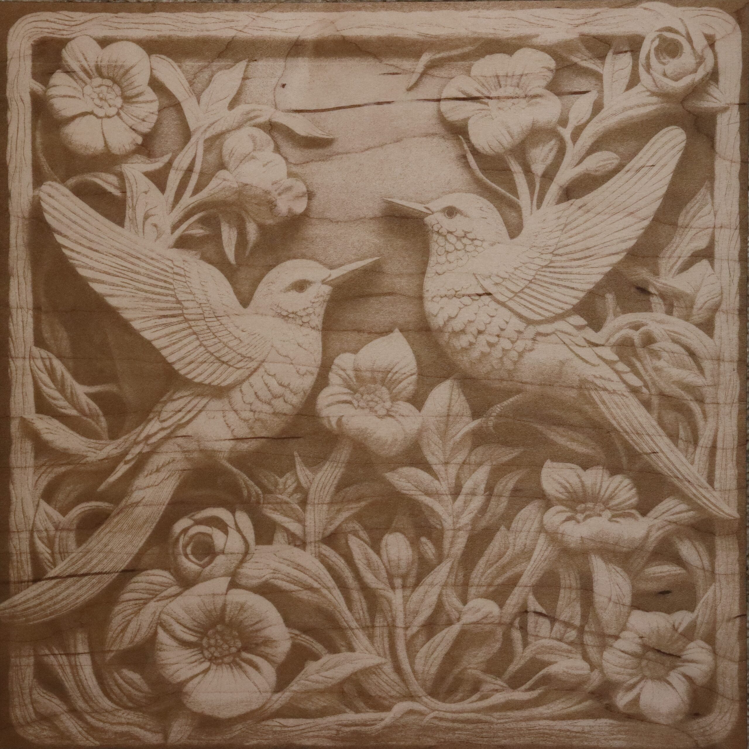 What a wonderful gift to hang on my office wall from my son. Love the hummingbirds and the natural look of it. Would love to get this design on a set of coaster or a small box.